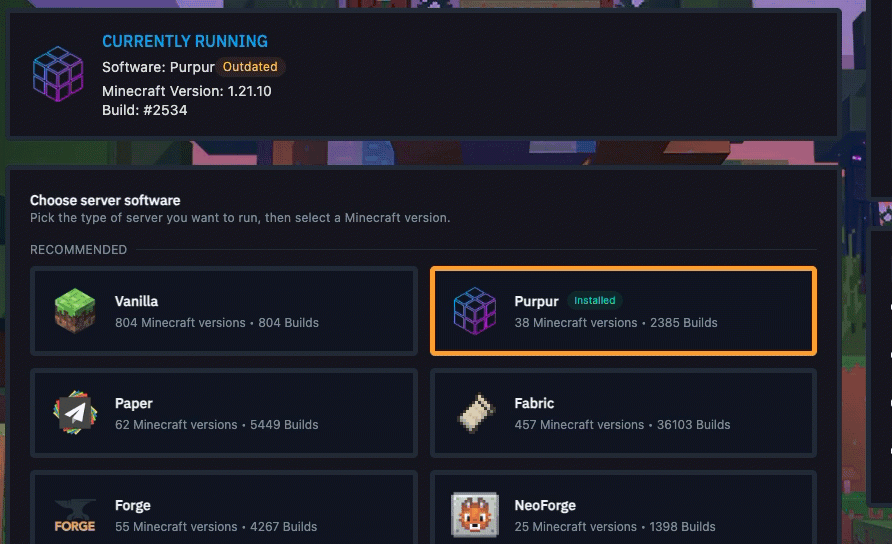If you are unsure which one to choose, start with Purpur for plugins or Fabric/Forge for mods. These are the most common and easiest to find support for.